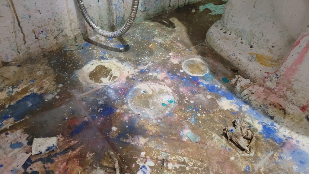 Isso cria um ambiente de circuito fechado. O campo radiante das Pinturas com Lâmpadas se projetará sobre o piso brilhante e selado com resina. Os CDs e a membrana acrílica de alto brilho captarão a luz da pintura, refletindo-a de volta para o ambiente. O espaço deixa de ser apenas uma caverna física e se torna uma câmara óptica onde a própria luz carrega o peso da tinta, e o chão serve como um arquivo reflexivo de ações materiais passadas.
