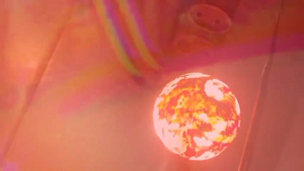 A luz padrão revela uma pintura, mas uma lâmpada pintada é a própria pintura, projetando-se para fora. Como seu diário anota, “a gravidade pinta o tempo” e “sóis colidem” dentro do vidro. O calor da lâmpada cozinha os pigmentos, criando uma combustão lenta e contínua. A luz que filtra através da água e do óleo que se recusam a entrar na lâmpada de vidro projeta um brilho mutável, manchado e “in fieri” sobre os azulejos e a banheira. A própria arquitetura se torna a tela que captura a emissão.