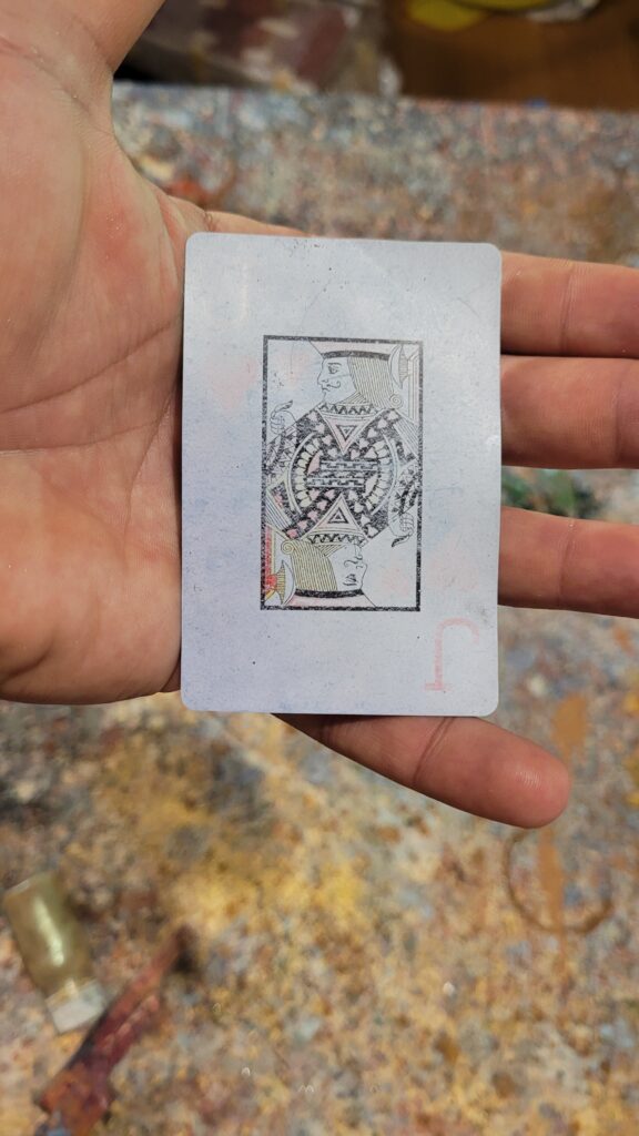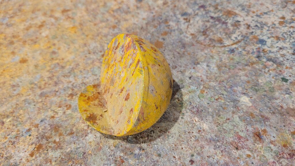 Ao observarmos núcleos como a semiesfera amarela através da macrofotografia, abandonamos a visão clássica da composição. Cada objeto revela-se como uma Molécula de Polilaminina, uma micro-obra autônoma que sustenta a estrutura do todo. Esta é a manifestação da cosmo-técnica: a técnica (o fazer pictórico e o processamento digital) mediando a relação entre o descarte humano e a ordem cósmica da natureza. O Anel (25) e o Valete não são apenas lixo; são sinais arqueológicos de um “mundo flutuante” (Ukiyo-e) que encontrou terra firme no Acre Metamórfico.