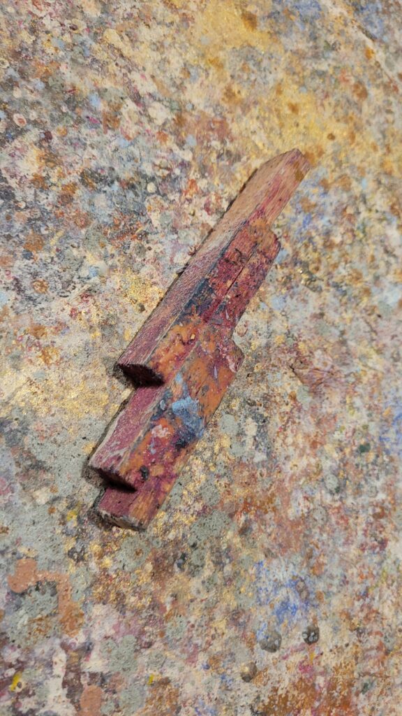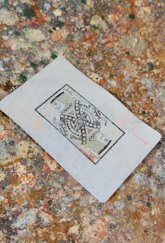A integração dos objetos encontrados — o Valete de Copas desbotado pelo sal ou o fragmento de madeira que emula um osso — não é uma colagem ornamental. É, antes, uma aplicação da “linha orgânica“ de Lygia Clark. Conforme as anotações da artista em 1954, a linha orgânica funciona como uma incisão no corpo da pintura, uma abertura que permite olhar o interior do seu organismo. No Aterro, essa incisão é o espaço onde o objeto “pousa”: a moldura funde-se com a tela, e a tela funde-se com o mundo, revelando que a pintura é um ser vivo e aberto.