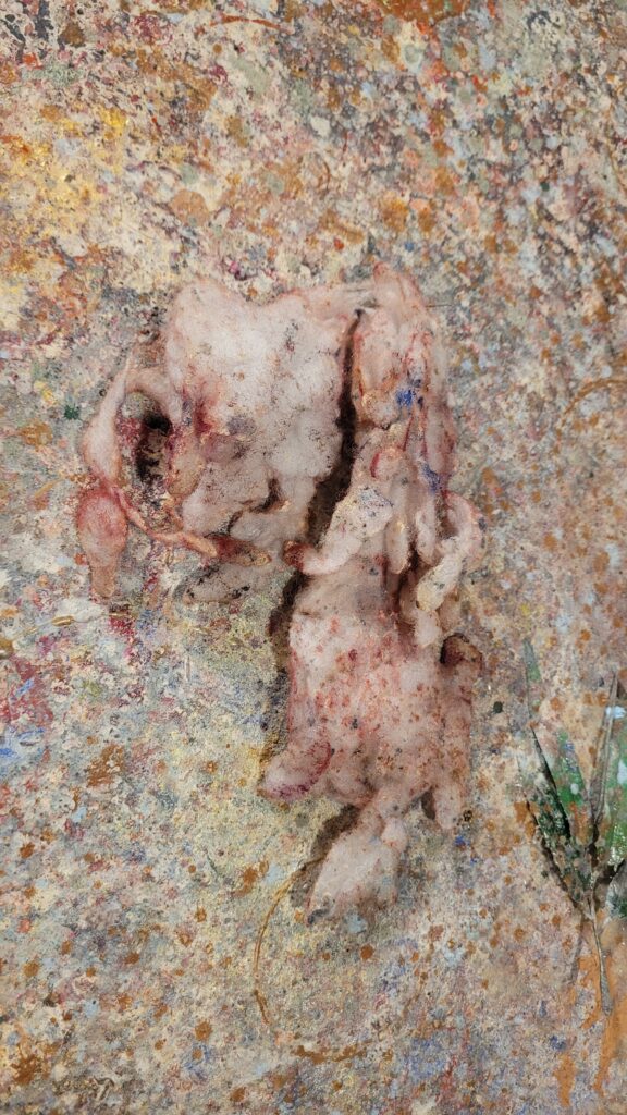 No ecossistema do Aterro Magmalabares, a pintura deixa de ser um plano de representação para se tornar um motor de dobra. Aqui, a matéria não espera passivamente pelo pigmento; ela colide, pousa e soterra-se em camadas de tempo e técnica. O que chamamos de “obra” é, na verdade, uma frequência cognitiva gerada na fricção entre o algoritmo da máquina e o resíduo orgânico do litoral.