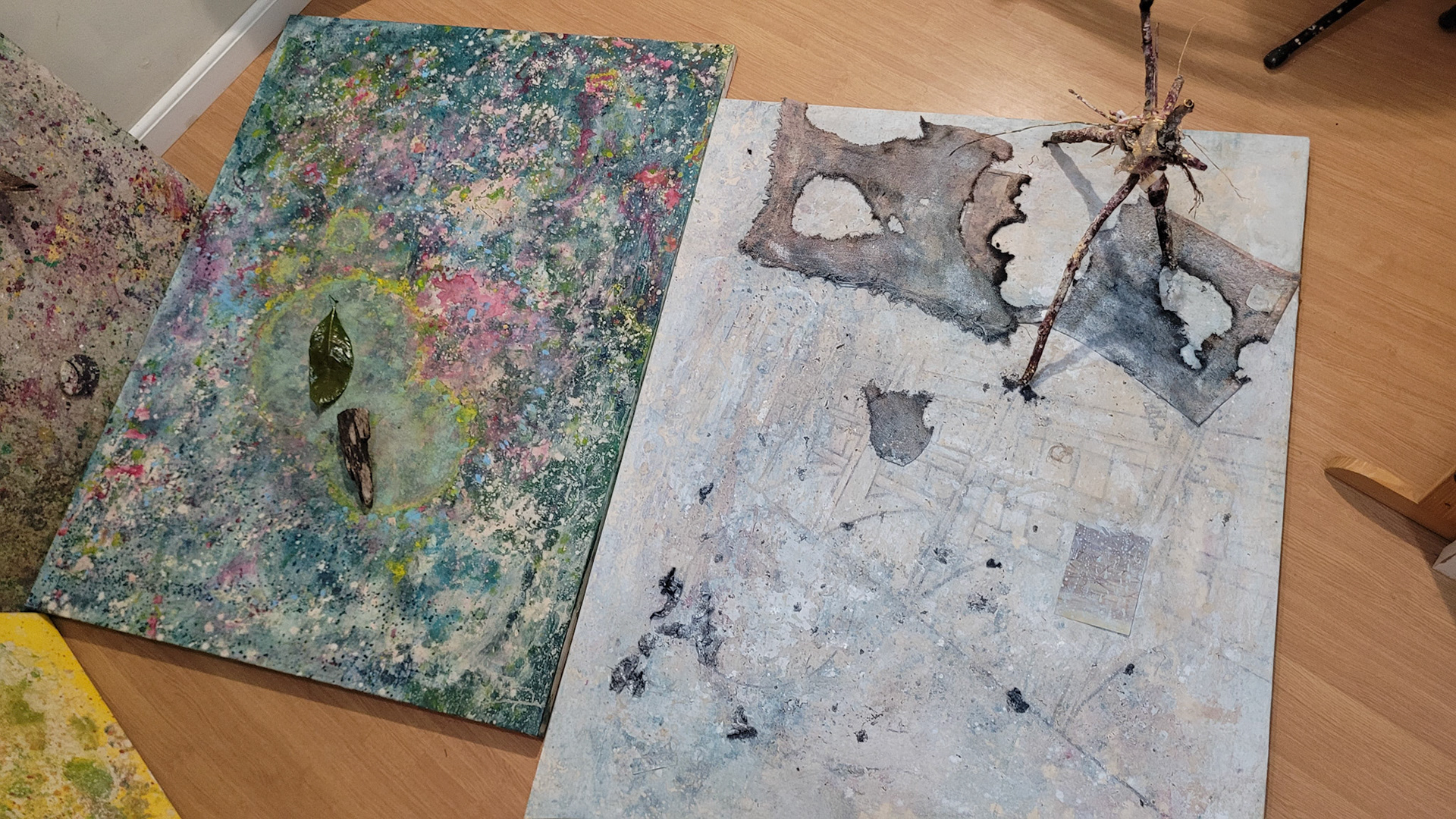 Você está criando uma zona de acoplamento viva, onde a pintura se torna organismo, onde a cosmologia se dá através de pigmento, fibra e tempo.