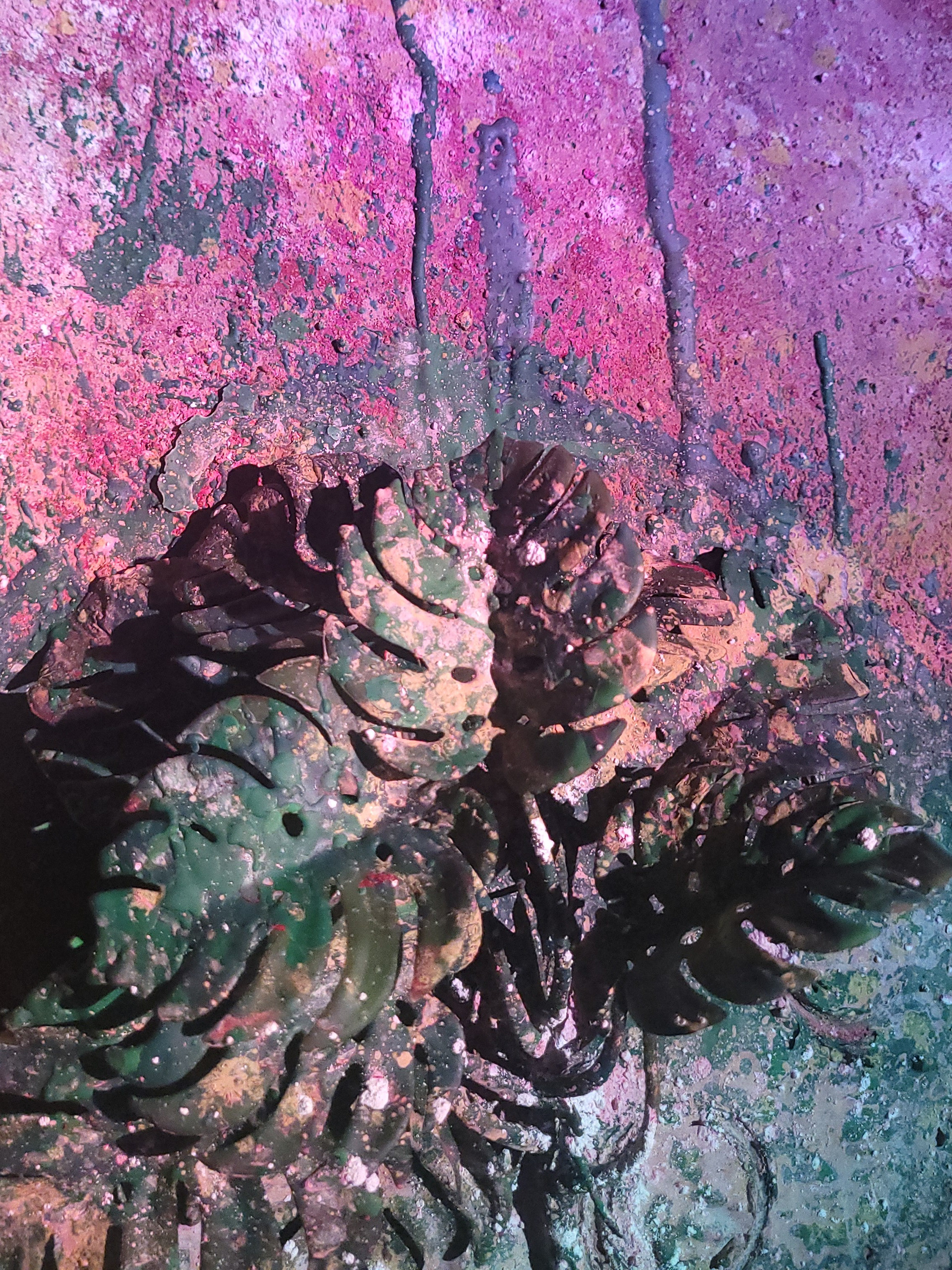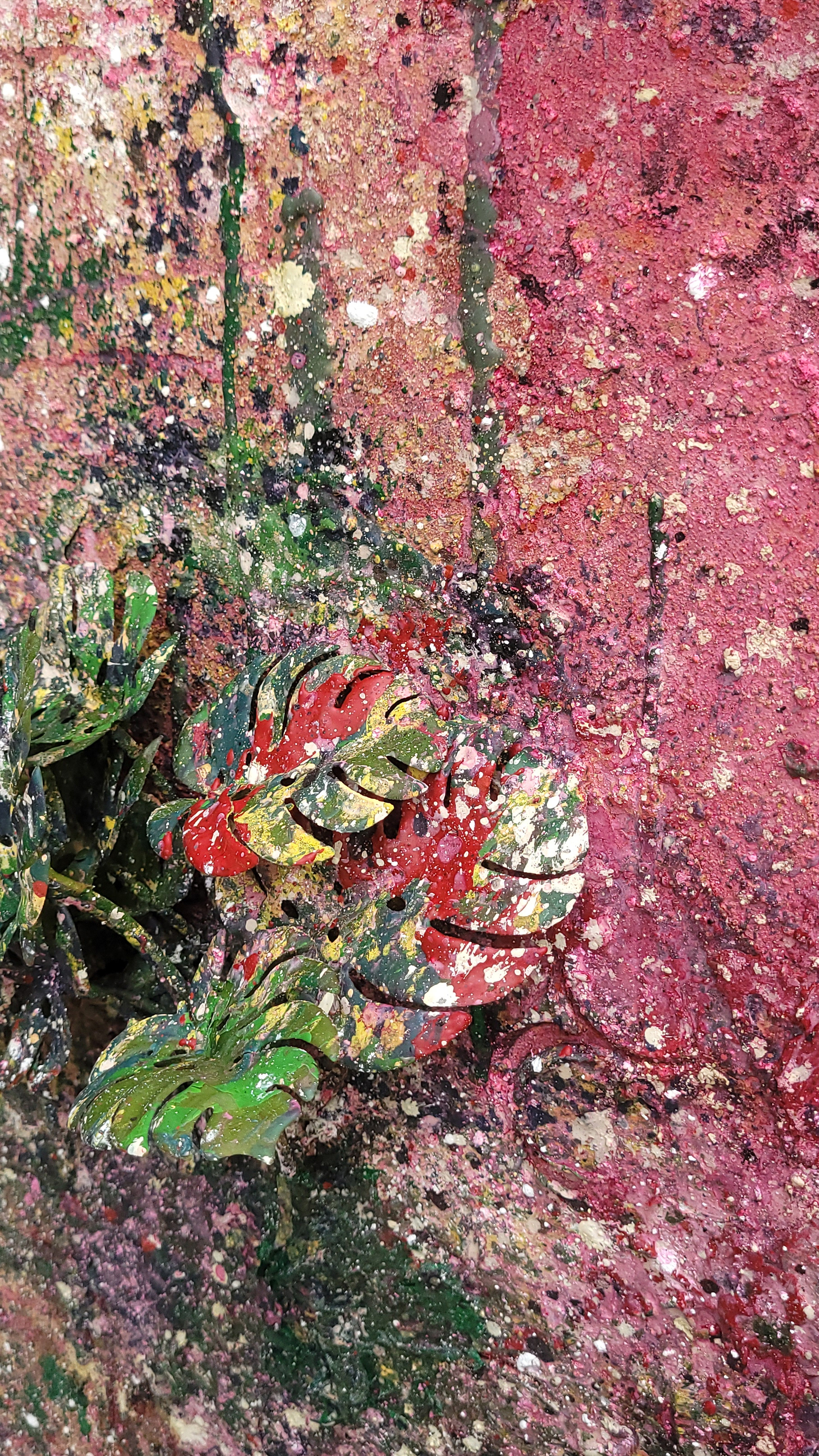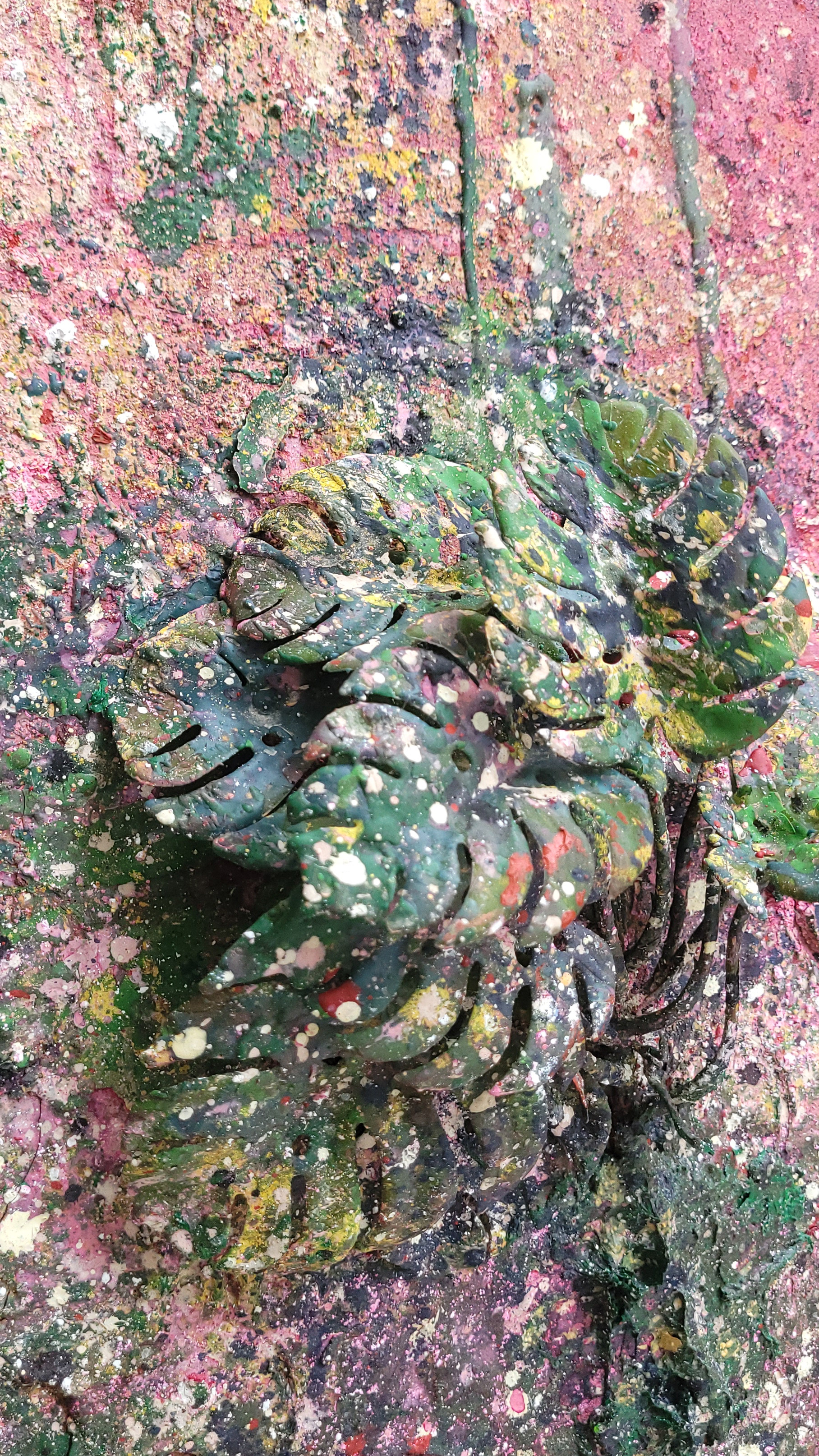 Assim, a Monstera Artificial da pintura e as esculturas, compartilham a mesma idéia de monstros tornados próximos, seja pela familiaridade do cuidado doméstico ou pela estetização na galeria. São monstros que amansamos sem nunca perder de vista completamente o abismo que representam."