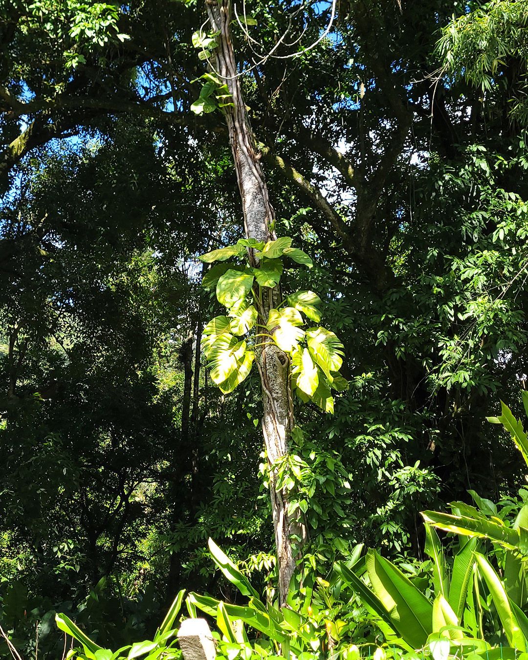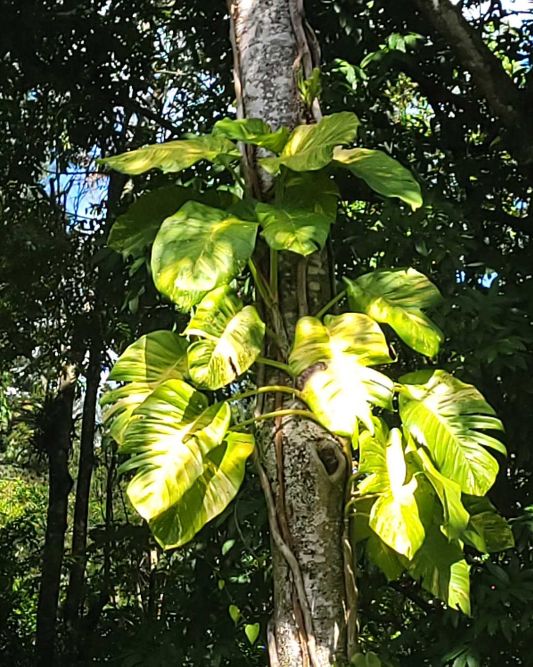 A Monstera, com sua folha em forma de costela esburacada, dialoga poeticamente com esses abrigos: ambos são seres-lugar, entidades que tanto acolhem (a sombra da folha protege, o abrigo abriga) quanto sugerem a potência indomável da natureza (a folha como garra do monstro vegetal, o fogo prometeico como indomesticável).