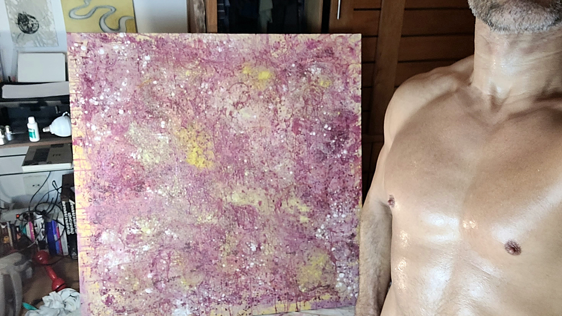 Pintura de técnica mista com camadas porosas e formas orgânicas, simbolicamente “vigiando” enquanto as palavras dormem. A obra encarna a ideia de que, quando a linguagem verbal repousa, o visual e o intuitivo assumem o comando, permitindo que significados ocultos venham à tona.