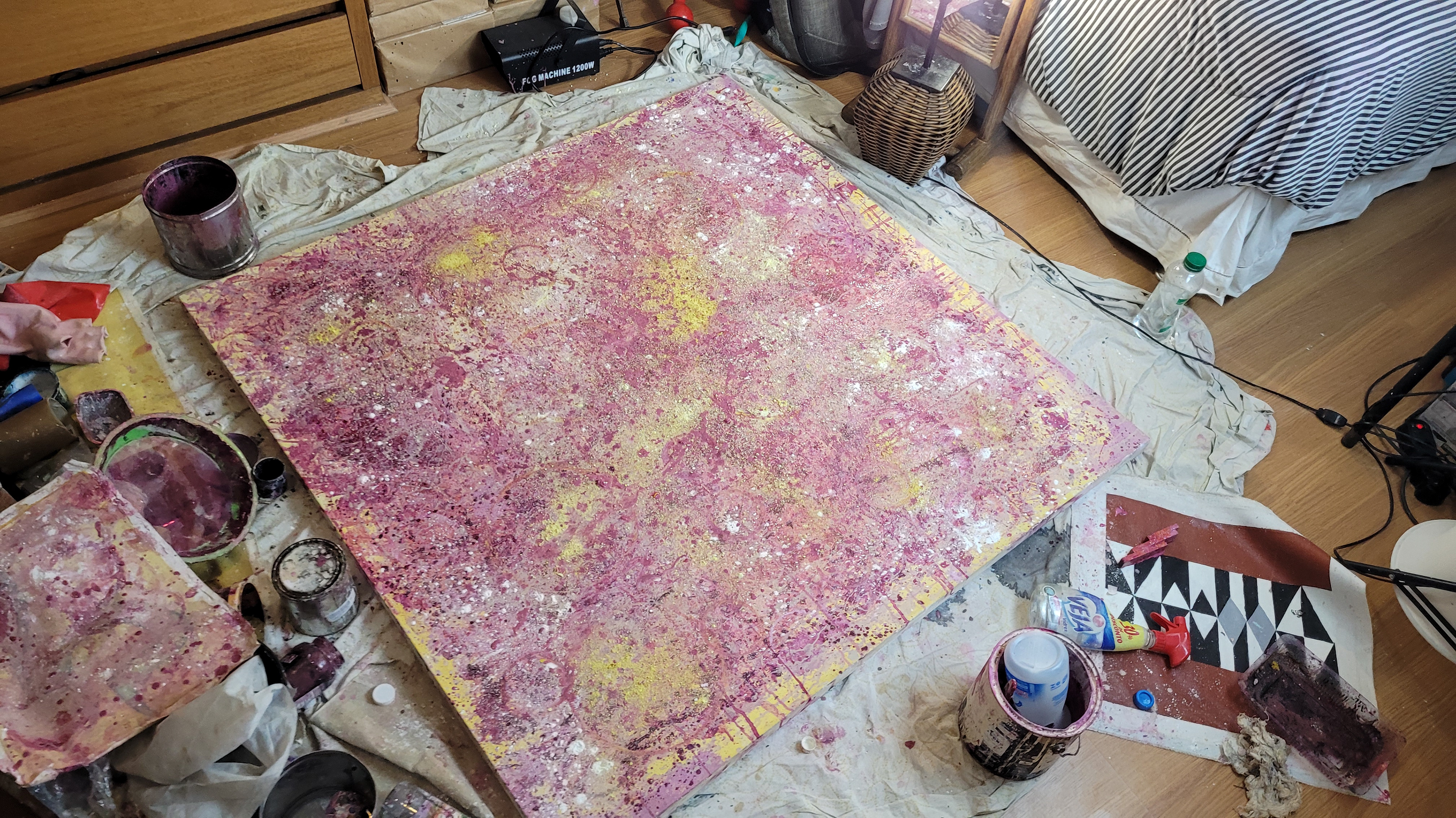 Likewise, in membranes and combustions (quantum mechanics and relational painting practice), the same multiplicity appears in pigments instead of pixels, porosity instead of precision, intimacy instead of surveillance. Where the camera freezes the multitude with digital photography equipment, porous paintings liquefy. Where photography sharpens the image, layers of matter on surfaces blur the boundary.