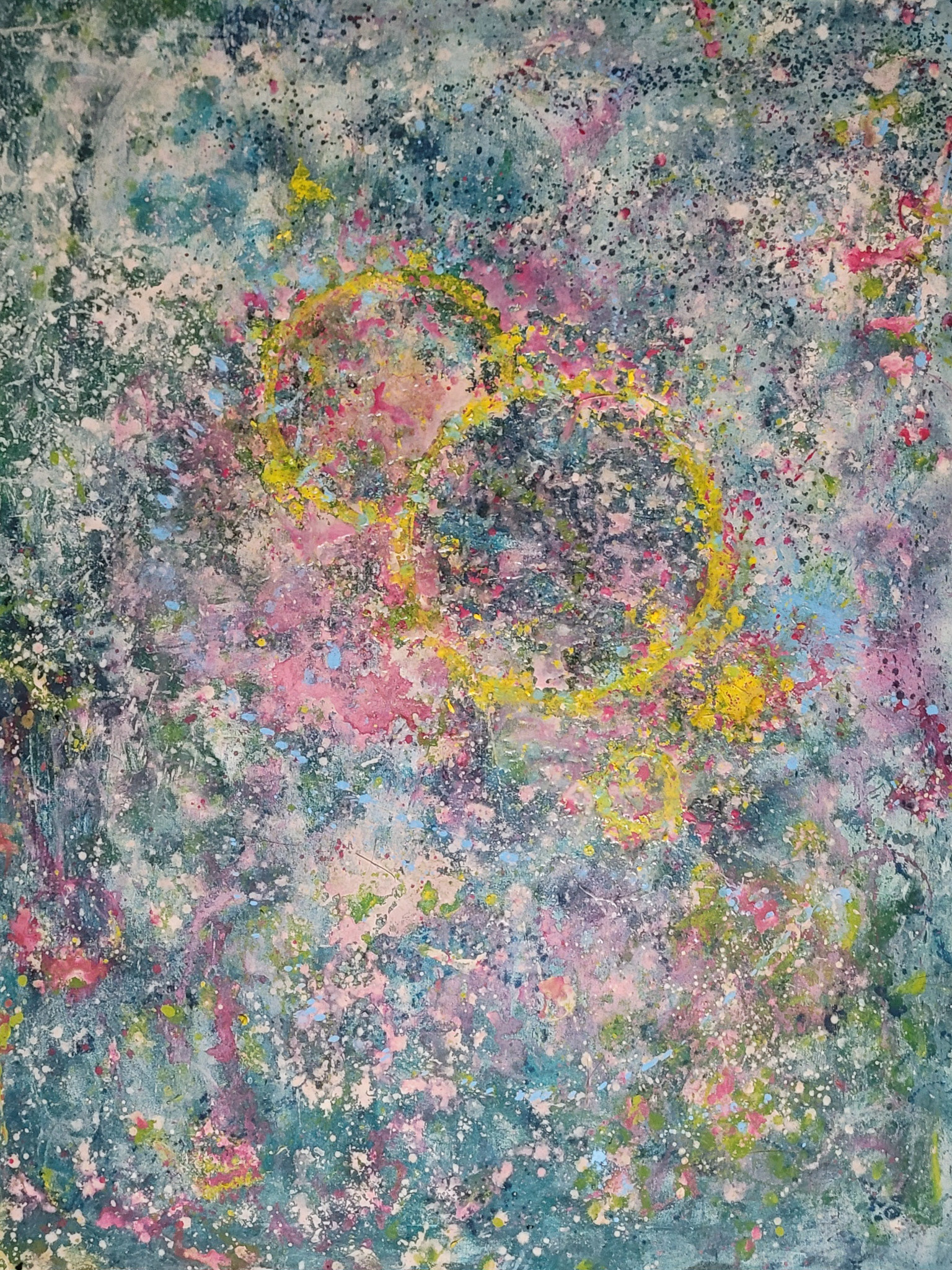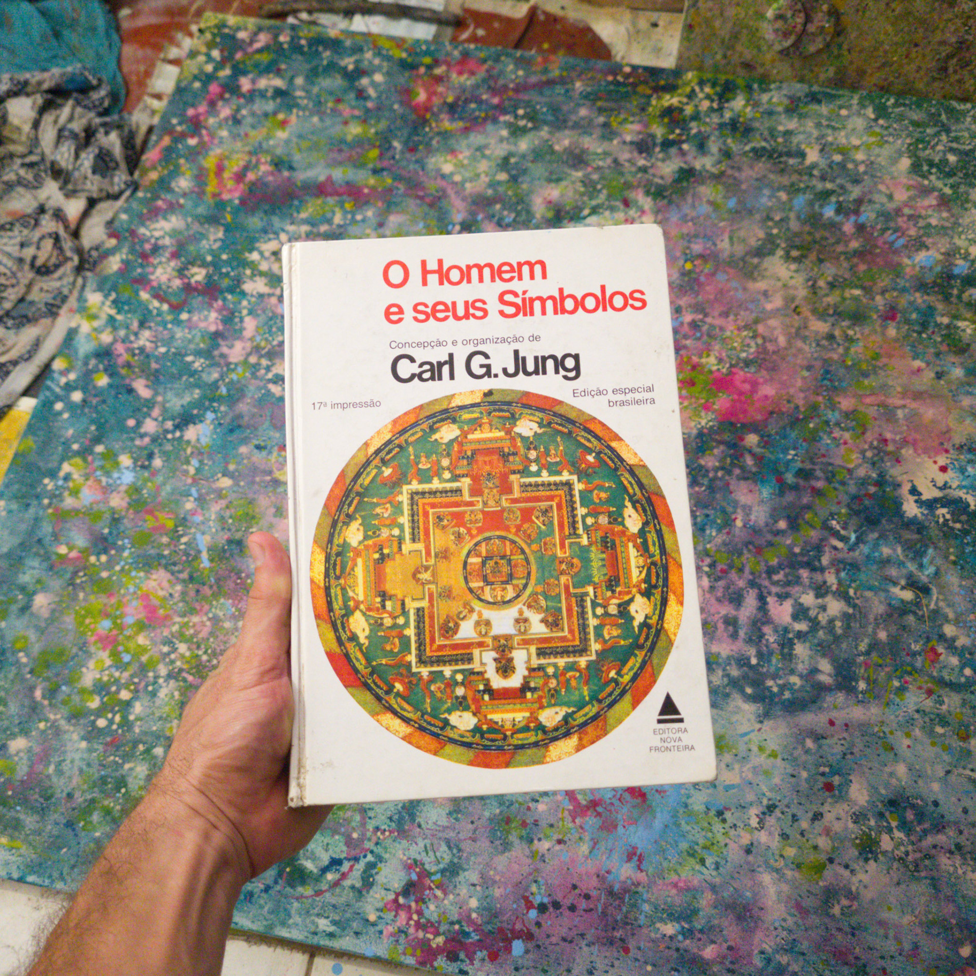 Jung escreve que “os símbolos de transcendência são aqueles que representam a luta do homem para alcançar seu objetivo” — e que a união do consciente com o inconsciente dá origem à função transcendente da psique. Essa luta simbólica transparece aqui no embate (ainda não resolvido) entre a geometria e a matéria, entre a simetria ideal das mandalas e a instabilidade dos pigmentos e dos líquidos. A pintura, neste estágio, ainda não encontrou plenamente sua tessitura ideal — mas seu descompasso é também sua potência. É no erro, na mancha, no excesso de rosa que se anunciam os frutos possíveis: uma flor do mar, um cogumelo imaginário, uma banana que desponta da terra pictórica. Como dizia Nise da Silveira sobre Hamlet: “Desvario sim, mas tem seu método”. Aqui, alucinação sim, porém modulada.