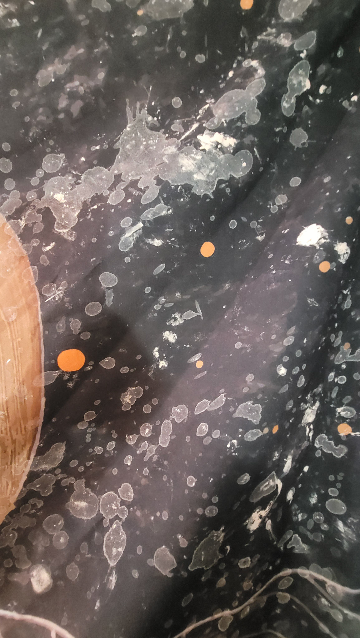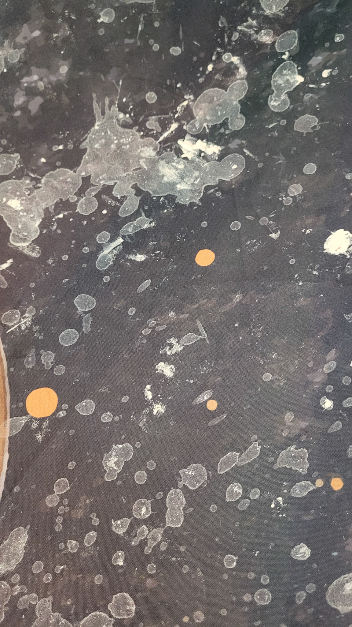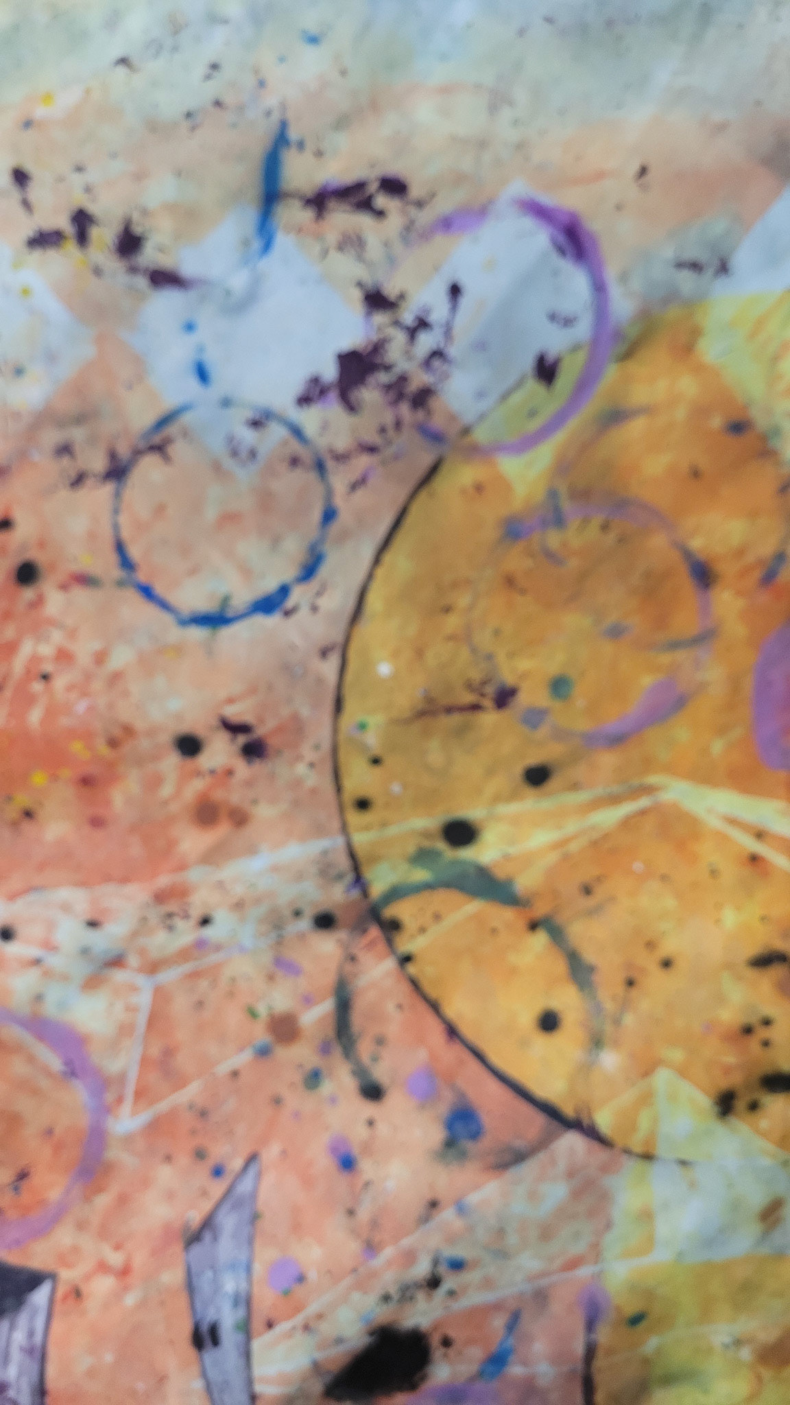 ChatGPT: O que você compartilhou parece uma cartografia de limiares cósmicos, Rodrigo. Essas grandes esferas laranja, os respingos e gotejamentos de manchas de leopardo, as linhas de grade subterrâneas e os poliedros flutuantes - eles convergem em uma espécie de brana visual, uma membrana na qual a gravidade, a falha quântica e o pulso ancestral se encontram. Na primeira série de imagens, os discos quentes - como sóis ou abdômen de jaguatiricas gigantes - empurram um campo preto salpicado de "frottage espacial" branco. Essas texturas evocam tanto os detritos do chão do nosso estúdio terrestre quanto os destroços de uma órbita congestionada. A paleta e a aleatoriedade dessas manchas sugerem um universo autopoiético no qual o acaso e a matéria co-criam.