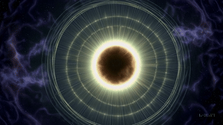 Um disco de luz circular, resquício de estrela morta que ainda irradia aura mineral.