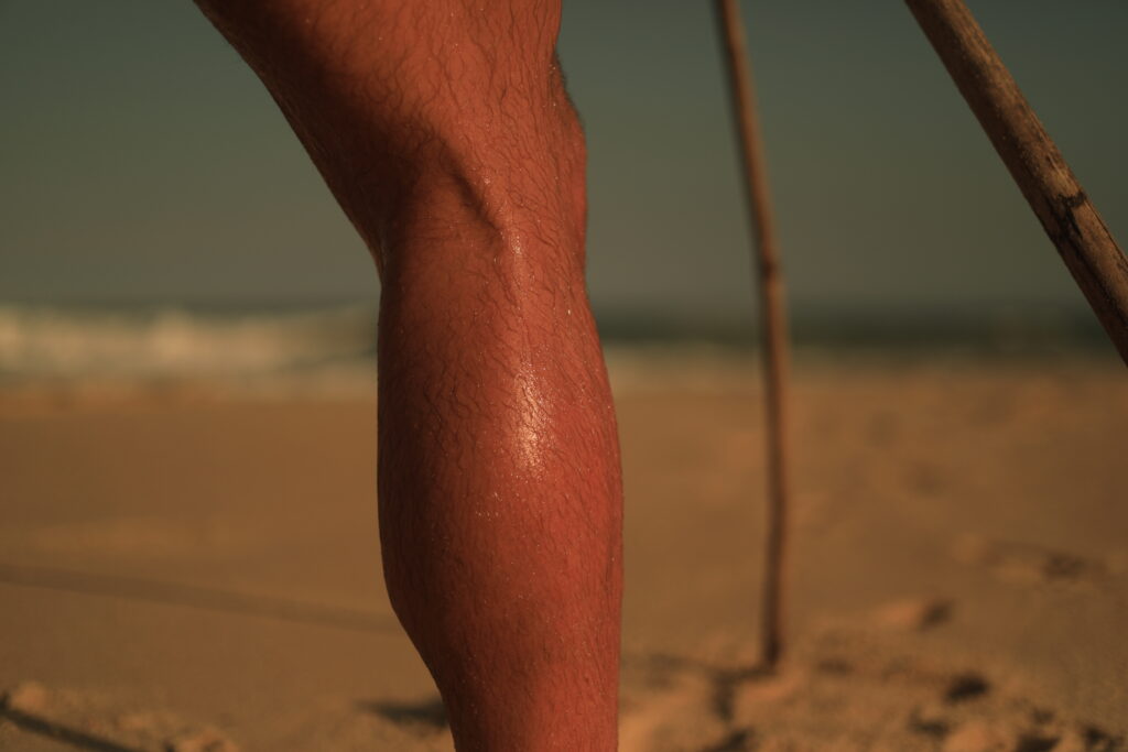 A batata da perna não é apenas um fragmento anatômico; é o elo que une o corpo à arquitetura. O conceito de Shelter (abrigo), marca o início da arquitetura, e as construções de galhos efêmeras na areia são a sua manifestação material.