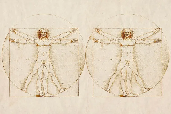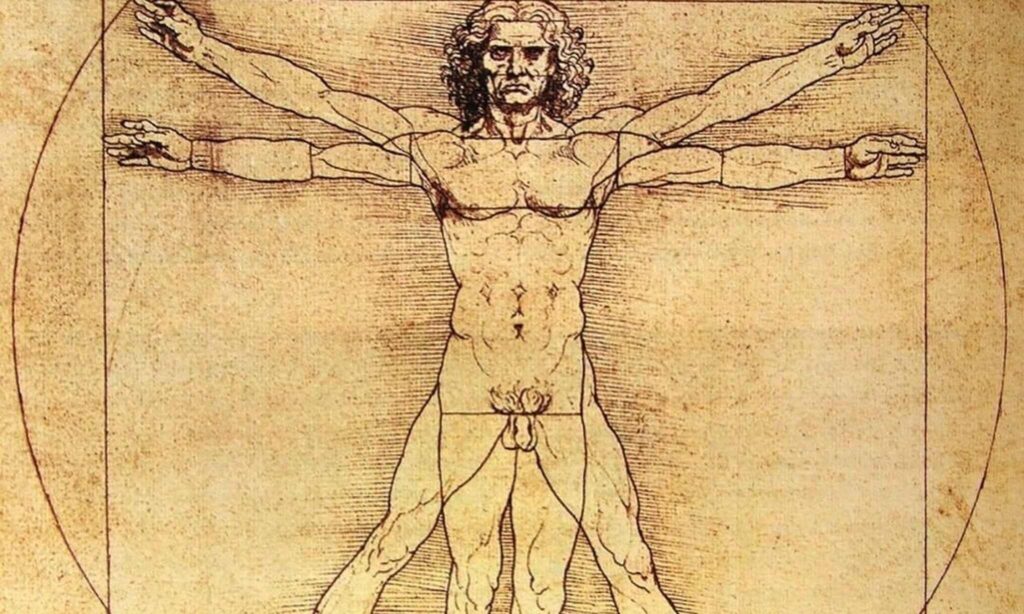 O Homem Vitruviano de Leonardo da Vinci é a unificação de braços e pernas, corpo e espaço, macrocosmo e microcosmo. Ele é a representação de proporções perfeitas dentro do círculo e do quadrado, as convenções quadriláteras da nossa teia sociedade-cultura. Através de Da Vinci, unimos a medição do corpo humano, o bipedalismo e a especialização das pernas à abstração, sensualidade e gesto erótico que permeiam a arte e a arquitetura modernos.