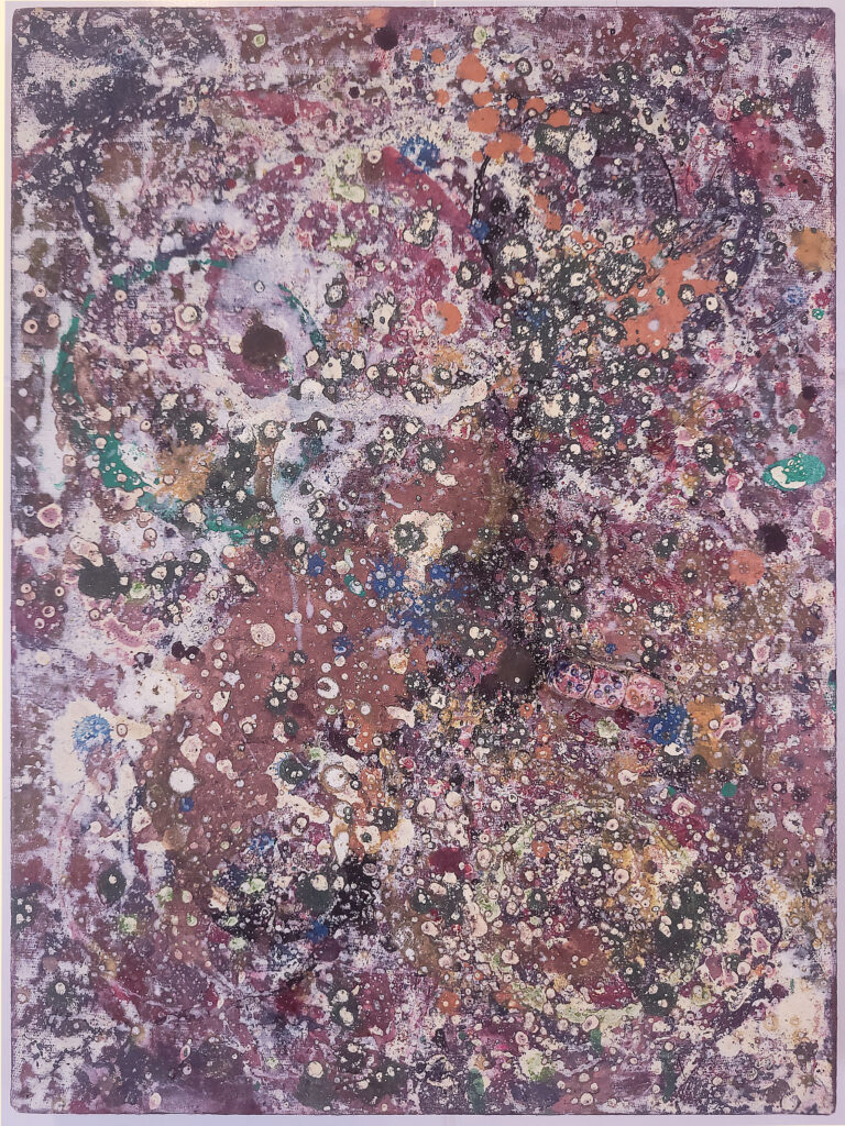 This painting already carries within itself the sensation of a crystallized event — a magmatic field where the three dice become not only play, but fossil, trace, evidence. The surface resembles a sky of petrified bubbles, mineralized dew, a cartography of stars and craters where chance pulses, but never disappears.