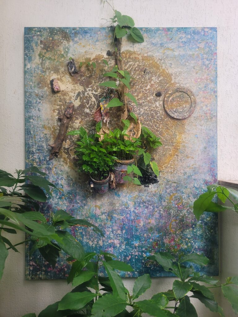 Arte que atua como sistema nervoso expandido afetando e sendo afetada por materiais, territórios, histórias, algoritmos. Pintura não é mais suporte, é membrana viva; escultura é antena; corpo é ritual; dado é oráculo; imagem é dobra de realidade, e sexo é a expressão mais íntima de linguagens secretas do universo, como a gravidade, que é mais que força, é geometria. Desenho, caule, estigma, ovário, orvalho, “orvario” semeando novos mundos… Não é exposição, é tec-tônica.
