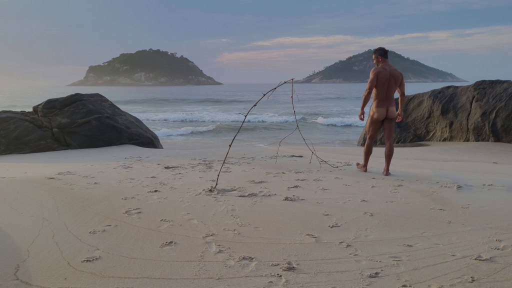 In Proposition No. 16, performed on the naturist beach of Abricó (Rio de Janeiro), the artist undresses his own body and returns himself to the oceanic landscape. Complete unedited frontal nudity video