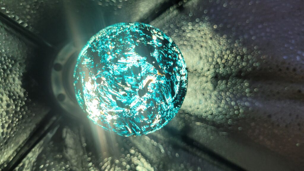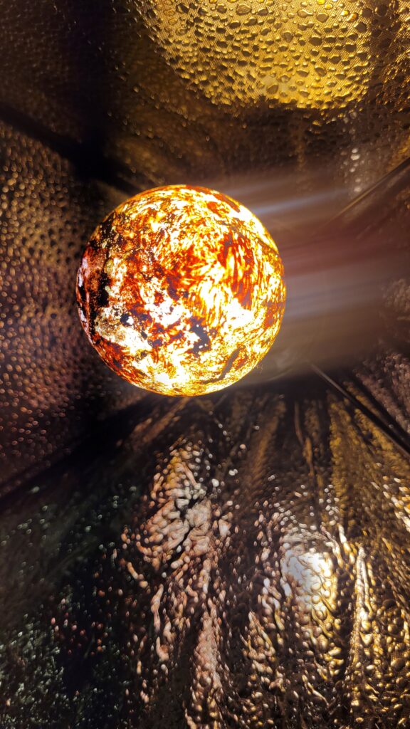 Now the lamps rest. Without illumination, they reveal another truth — the planetar body of pigment and mineral, like cooled magma, or the mold in wax before the bronze is cast. The surface becomes an archive of gravity’s slow gestures: sediment, oxide, residue. The light once trapped inside now lingers as shadow.