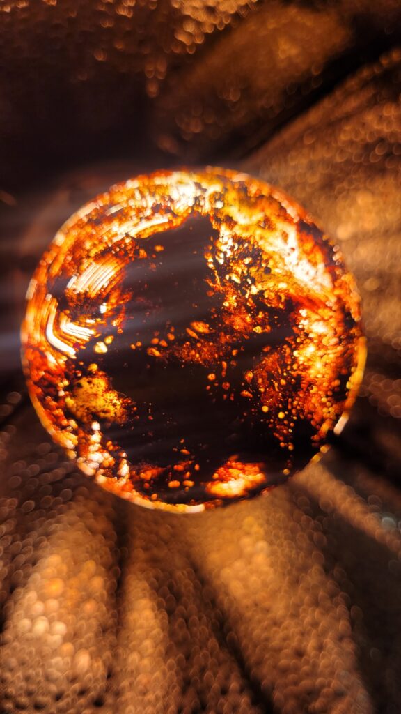 Each texture remembers its own fire. The camera captures what the naked eye cannot — the spectral memory of heat, the double of light stored within the sensor’s silicon. It is as if the machine itself dreams of seeing. The Samsung, the iPhone — both act as technomagical intermediaries, folding perception, applying unseen membranes to enchant. The algorithm paints what we miss, adjusting the horizon to what it wants us to perceive.