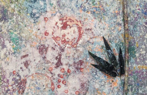 A chamber of drift where matter remembers its weight. This painting-object inscribes matter as a gravitational field.Across its surface, orbital rings and speckled craters accumulate like cosmic sediment,while a bamboo stick — a hybrid species, an exotic axis — anchors the vertical dialogue between copy and original, nature and fiction. The artificial leaf emerges as … Continue lendo Non-existent Species under Dense Sky