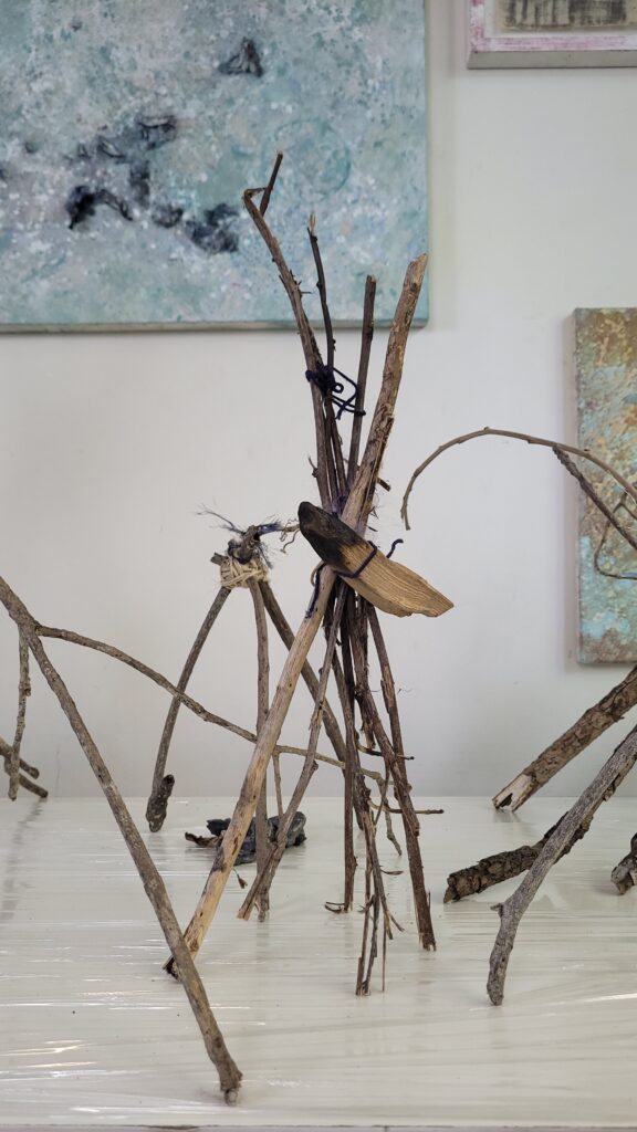 Epistolário com a Máquina. Um espaço em processo, em que pintura, escultura, escrita e pensamento se enredam como organismos em formação contínua. Entre estratos de tinta, carvão, luz e silêncio, emergem diálogos com a máquina, fragmentos de mundo e formas se apresentam. Este não é um arquivo estável: é um campo de escuta, fricção e matéria em transformação.