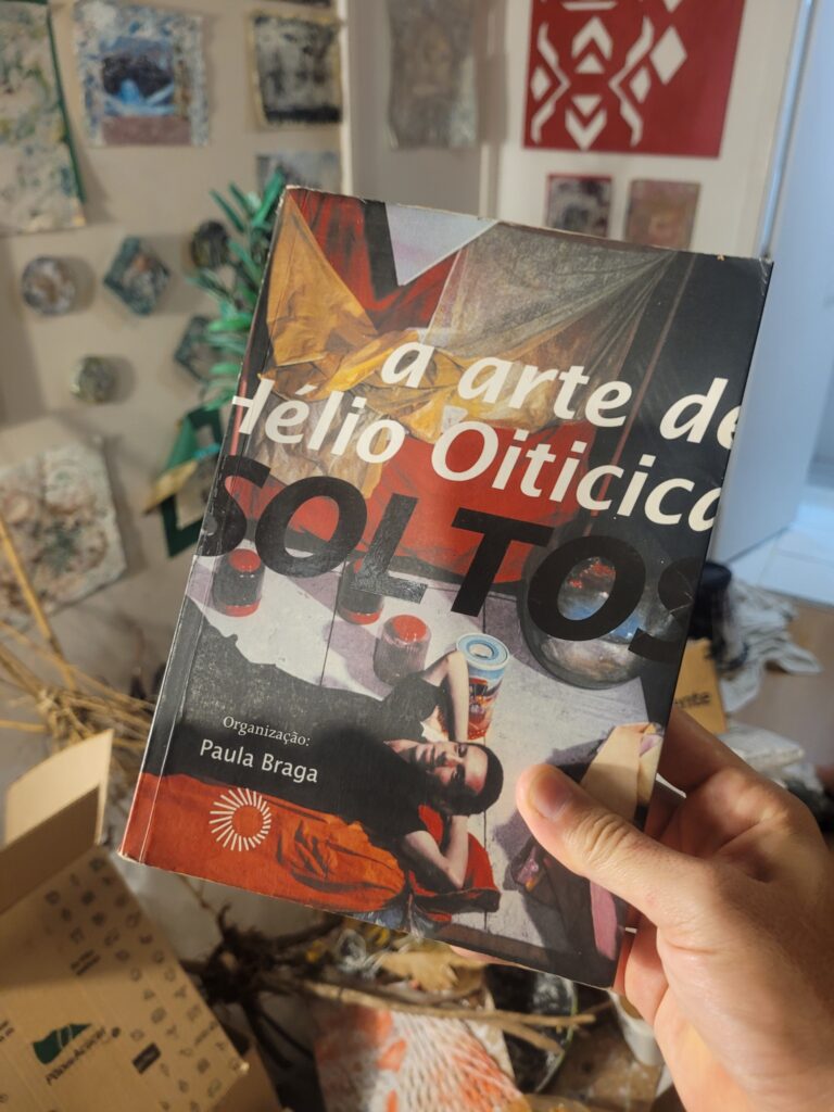 Os textos analisam a transição das pinturas geométricas para os Bólides (caixas com pigmentos e materiais que você manipula) e os Parangolés (capas para vestir). O “Participador”: Um conceito forte no livro é a substituição do “espectador” pelo “participador”. A arte só se completa quando alguém interage com ela, vestindo, pisando ou entrando na obra. Crelazer e Delirium Ambulatorium: O livro explora termos criados por Oiticica para descrever estados de criatividade e lazer livre, onde o caminhar pela cidade e o ócio são formas de fazer arte. Diálogo com Outros Artistas: Há análises comparativas interessantes, como a relação entre as propostas de Oiticica e as de Lygia Clark, focando na libertação do corpo e na quebra do condicionamento social. Música e Labirinto: Explora a ideia de que Oiticica via seu trabalho como “MÚSICA” (em letras maiúsculas), uma totalidade-mundo que envolve todos os sentidos, inspirada em sua vivência com a Mangueira e o samba.